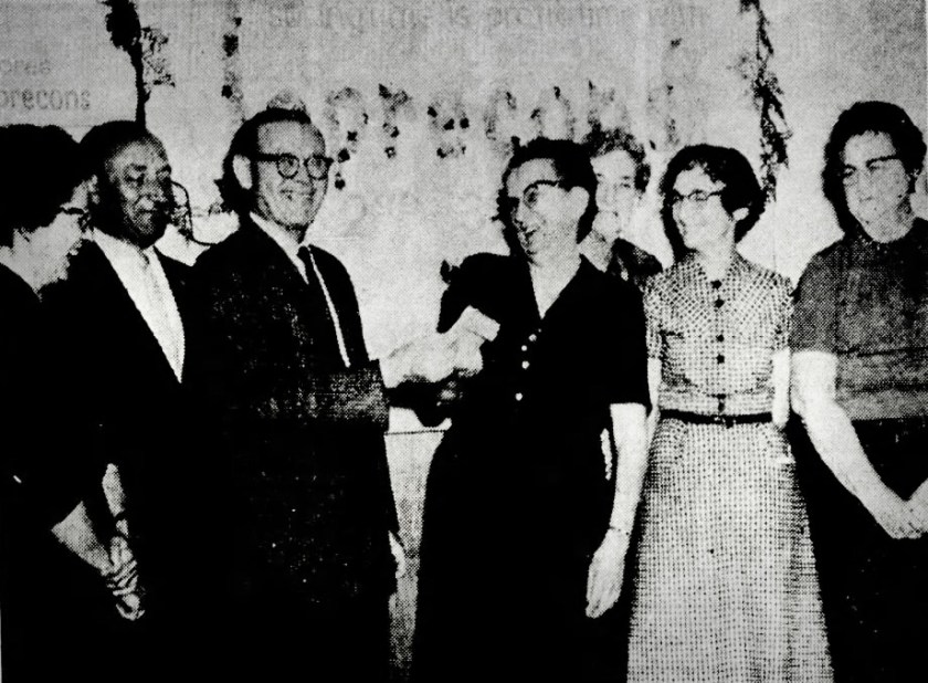 Mrs. Goldie Waters, the first employee to go to work at the Pacific Shoe, received the first profit charing check just in time for Christmas 1961. Nine other women of the original ten employees hired by the company when it began operation also received checks – Anna Peterson, Myrtle Votaw, Francis Strauman, Martha Holmes, Billie Thiemann, Marian Smith, Ida Brown, Virginia Hirth, and Helen Murphy.